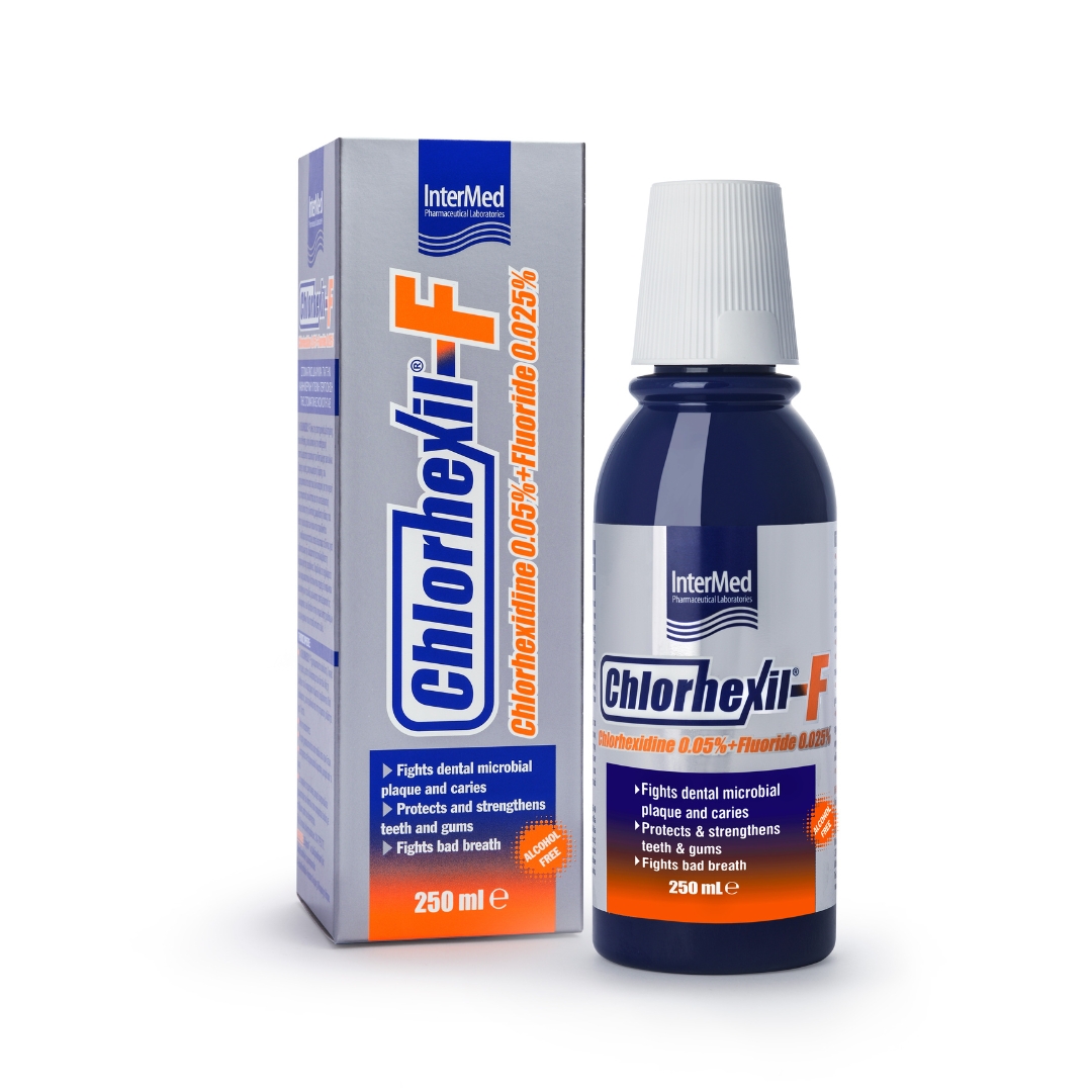CHLORHEXIL-F 0.12% RASTVOR ZA ISPIRANJE USNE DUPLJE. HLORHEKSIDIN 0.05% + Fluorid 0.025%.